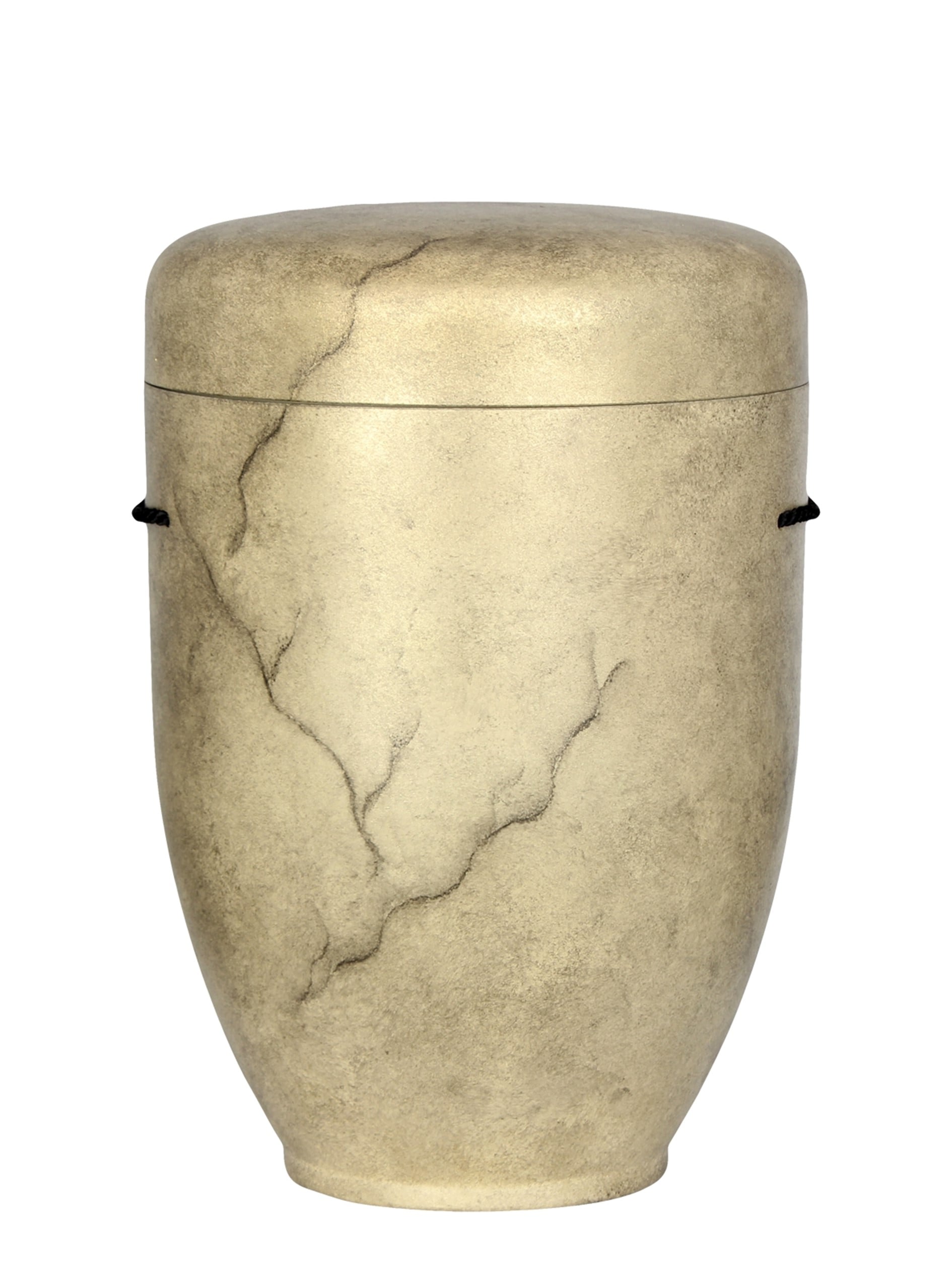 Urne aus Naturfaser, elfenbeinfarbener Marmor, schwarzgoldener Glanz. Abmessungen: Höhe ca. 28,0 cm Durchmesser ca. 21,0 cm