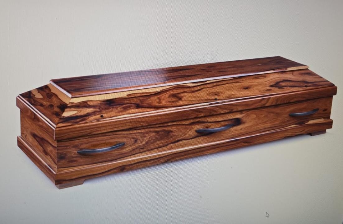 Гроб Pedro выполнен из палисандра и отличается разводами и оттенками от светло — коричневого до шоколадного с фиолетовым прожилками.