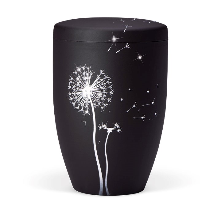 Урна из натурального материала, антрацитовый велюр, одуванчик с элементами Swarovski.