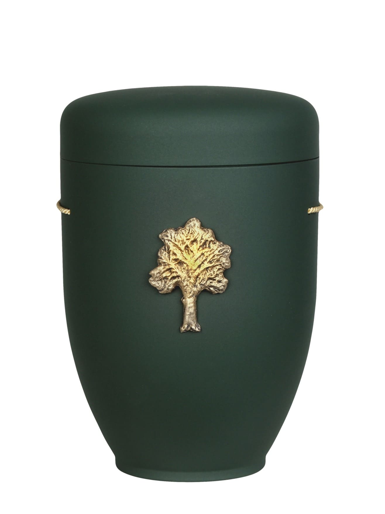 Урна из натурального материала елового цвета с накладной эмблемой золотого цвета из бархата.